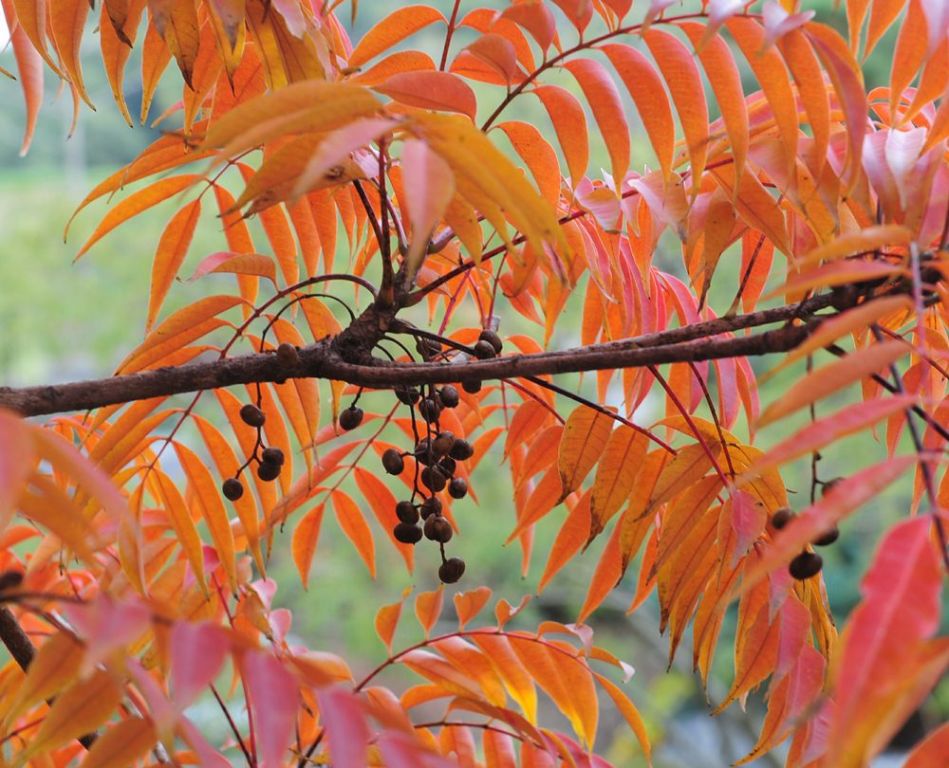 日本野漆樹(Toxicodendron succedaneum),又稱木蠟樹,漆樹科落葉小喬木,花期五月,果期十月,集靚麗色葉與采籽產(chǎn)蠟于一體,是具有用途廣泛的優(yōu)良經(jīng)濟(jì)樹種。